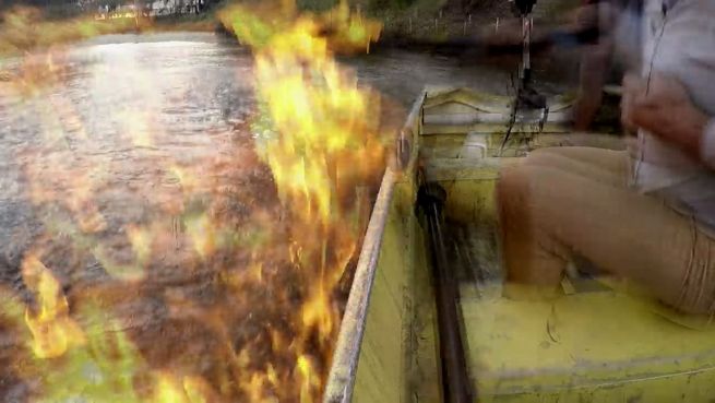 Aus einem Fluss in Australien tritt anscheinend Methan aus. Dort wollte der australische Politiker Jeremy Buckingham die Auswirkungen des Erdgas-Förderverfahrens 'Fracking' zeigen, doch dann brannte der Fluss um ihn herum plötzlich lichterloh.